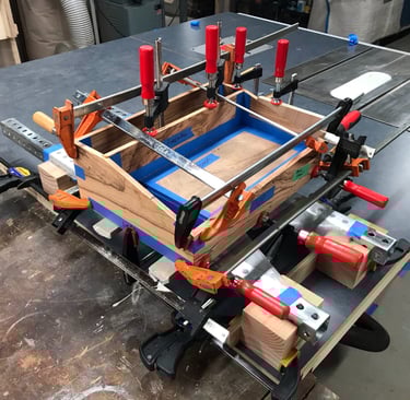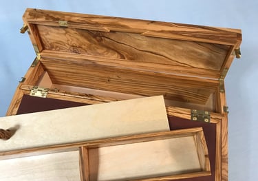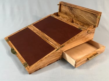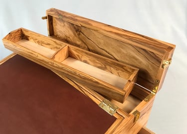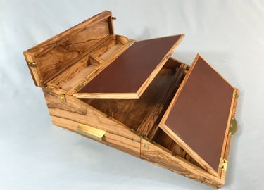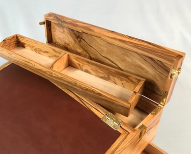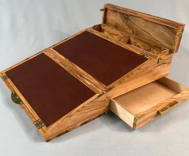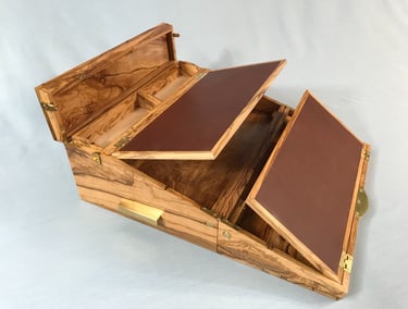 Commissioned by a client for their child who was graduating architecture school, this portable writing desk was inspired by those carried by 18th century military leaders during their campaigns in the field.