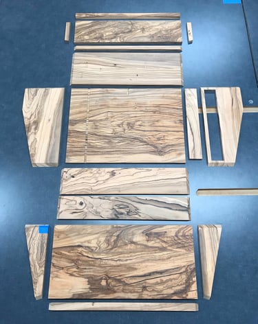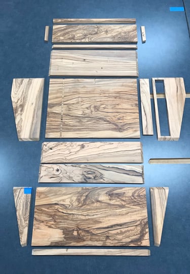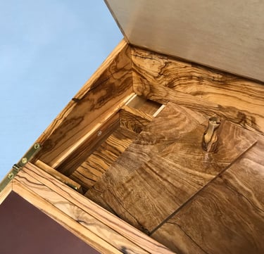 It was constructed primarily from olive wood panels salvaged from the walls of a Long Island North Shore estate. Using this reclaimed material presented significant construction challenges, but results in a truly one-of-a-kind piece with special meaning to the client.